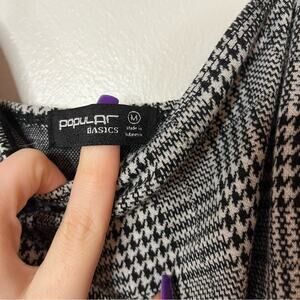 Chic and versatile, this Popular Basics mini dress features a classic black and gray / grey plaid print with adjustable spaghetti straps and a flattering bodycon fit. Perfect for layering or wearing solo for a sleek, casual look. Has small stains on the bottom front and back, shown in the pictures.