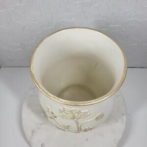 Popular Bath Maddie Waste Basket 10" Cream Floral Resin Raised Design Trash Can