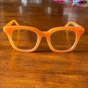 Bold and stylish, this full-rim frame is designed for the everyday eyeglass wearer who appreciates fashion. Romy elevates the classic square shape with its chunky acetate build and rich orange hue. The timeless silhouette is complemented by double stud rivets, adding a touch of refinement that ensures this look stands the test of time