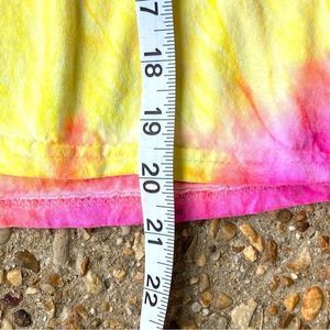 Popular Sports pink and yellow tie dye short sleeve tee with a female flipping the bird and putting up her middle finger which has a heart on it.
