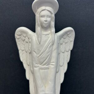 Porcelain Angel Holding Wreath/ 17” Ready for you to paint / never used no chips , cracks perfect condition