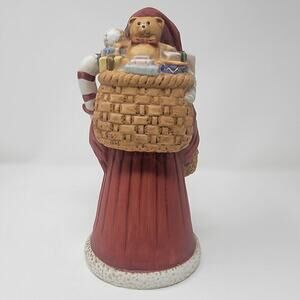 Porcelain Antique Vintage Musical Santa Clause Music Box Father Christmas With Candy Cane, Teddy Bear and Presents Decor Collectible