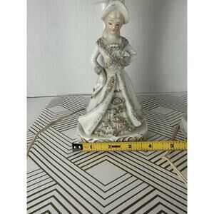 Porcelain Boudoir Table Lamp White And Gold Woman Figurine Vintage Set Of 2 15”