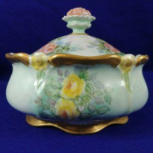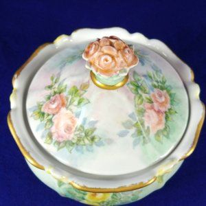 Porcelain Bowl with Lid Gold Trim Hallmarked Bavaria Germany