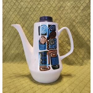 Fun porcelain coffee carafe by Barker Bros Royal Tudor Ware. Made for the Tonga line inspired by the South Pacific and Tiki style.