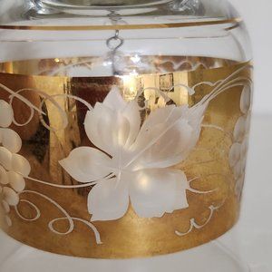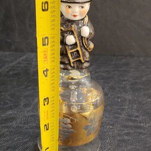 Goebel Bockling vintage chimney sweep boy bell made in Germany. The figurine is porcelain and the bell is a clear glass with clear glass bead clapper. The clear glass is accented with a 1.5" band of gold etched with alternating patterns of grape leave and grapes with twisty tendrils. Above the 1.5" band is a fine band of gold. Condition: Pre-owned, no seen flaws. Measures: 6.5" Non smoking pet free home.