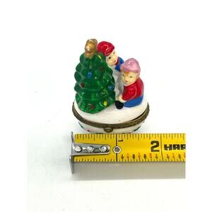 Porcelain Christmas Tree with Children Hinged Trinket Box