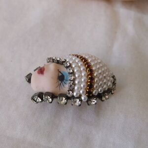 Vintage Porcelain Painted Face with Rhinestones and Faux Pearls