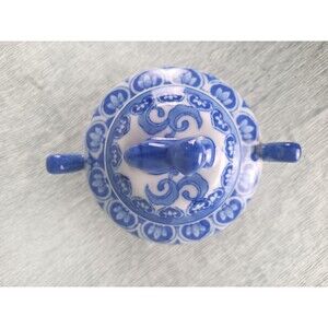 Porcelain Ginger Jar Asian Vintage Lidded Dish Container with Animal Figurine