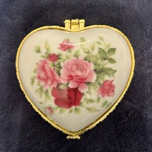 Porcelain Heart Box Pink Red Flowers