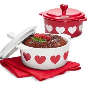 Brand new The Cellar 2-piece Heart Print Mini Stoneware Cocottes. Heart, love cookware.