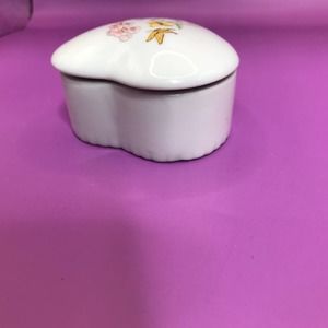 Pretty heart shaped trinket box of porcelain with floral design. Perfect for vanity or a gift.