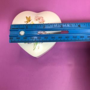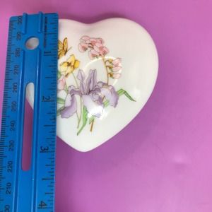 Porcelain Heart Trinket Box Lillies and Butterfly Design 3'x3' for Rings Perfect