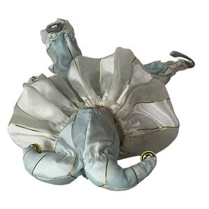 Porcelain Bisque Jester Harlequin Clown Mardi Gras Costume Sitting Blue Gold Silver Vintage Collectible 6”