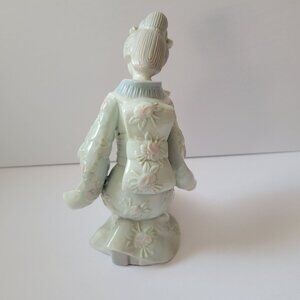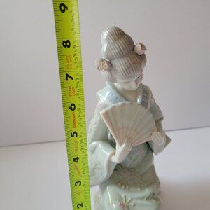 Porcelain KPM Japanese Geisha Figurine With Fan Kneeling 10" Floral Detail
