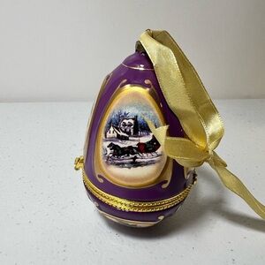 Porcelain Music Box Ornament 2007 Mr. Christmas Holiday Purple Egg 4” x 2.5”