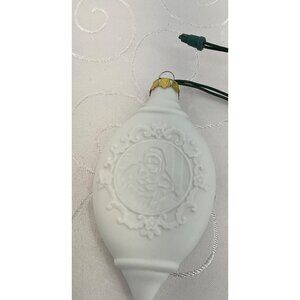 Porcelain Ornament By Roman 1982 Virgin Mary Relief Design White