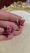 vintage flower-shaped earring made of porcelain, featuring a prominent magenta rose with green leaves and a screw-back closure. made in England.