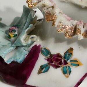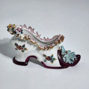 Porcelain Ruffled Edge Gilded Shoe Gold Accents Floral Details Japan