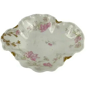 Antique Haviland & Co Limoges Porcelain Scalloped Oval Serving Dish Floral