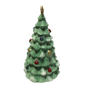 Porcelain Spruce Tree Figurine With Multicolor Ornaments & Star Topper