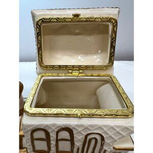 Porcelain Train Trinket Box With Hinged Lid & Gold Accents