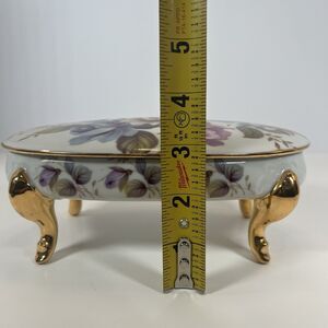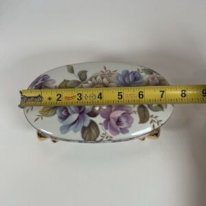 Porcelain Trinket Box With Gold Gilded Feet Oval Shaped With Hand Painted Roses