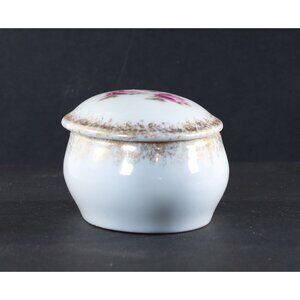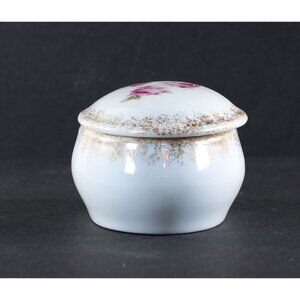 Porcelain Vanity Jar Trinket Box Pink Roses 1950s GC 2.25" Tall