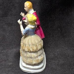 Porcelain Victorian Colonial Couple Courting Man & Women Lace Dress Figurines. Great preowned condition, the skirt is fabric and has signs of aging.