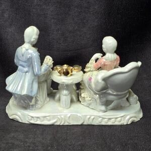 Vintage Porcelain Colonial Courting Couple Dog Woman & Man Figurine Tea Party. Excellent preowned condition.