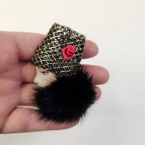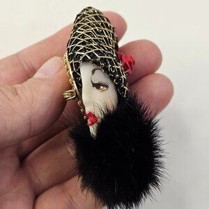 Porcelain Vintage Women's Face Brooch Fancy Fashionista Unmarked Pin