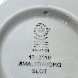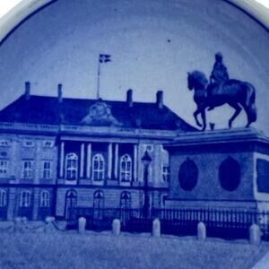 This Royal Copenhagen Denmark Plaquette (mini plate or sometimes called butter pat) features The Amalienborg Palace in blue and white colors.
