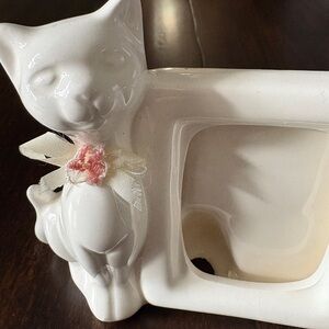 Porcelain White Cat Vintage Ceramic Picture Frame