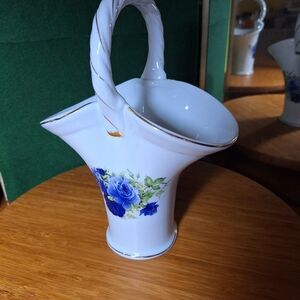 Lovely Porcelain Basket fill with flowers or display on its own Floral design and gold embellishments excellent like new pre-owned condition ,I have Two available