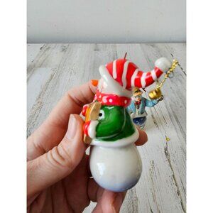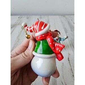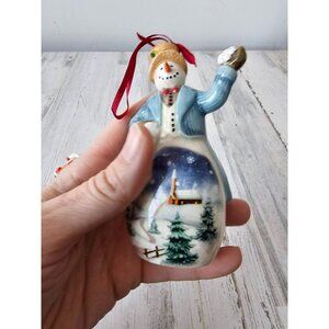 Porcelain snowman ornament set star scene Church Xmas tree snowman