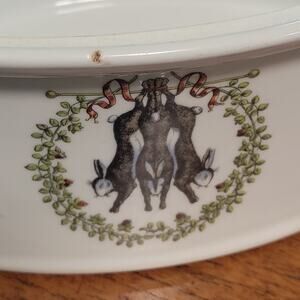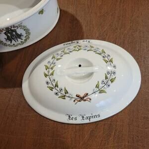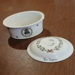 Porcelaine d'Auteuil Chambord 2 Qtr Oval Covered Casserole France Le Lapins Hare