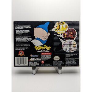 Get ready for an adventure with Porky Pig's Haunted Holiday, a classic video game for the SNES Super Nintendo platform. This action and adventure game, released in 1995, features Porky Pig as the main character exploring a spooky haunted holiday resort. The game has been tested and works flawlessly. The package includes the game cartridge, original box and clear protector.