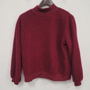 Porridge Anthropologie Womens Teddy Sweater Size XS Cherry Red Mock Neck Boho