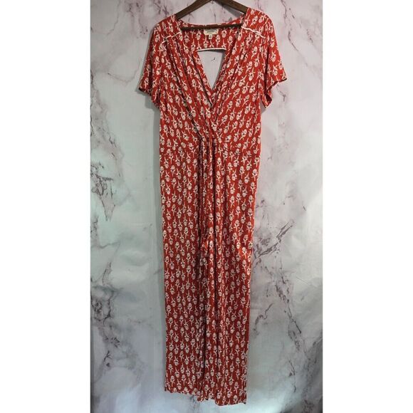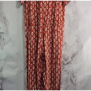 Porridge Jumpsuit Womens Medium Orange White Floral Wide Leg V Neck Pocket