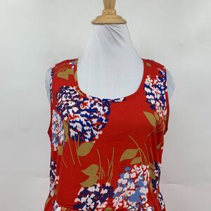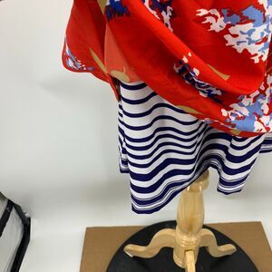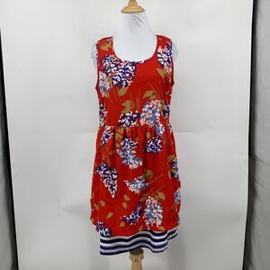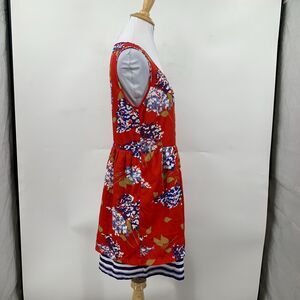 Porridge Petaluma Mini Dress Women S Small Red Floral Stripe Sleeveless Peep Hem