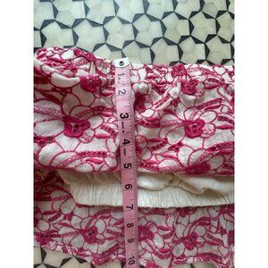 These medium-sized pink floral lace shirt Porridge offer a sophisticated layered design. New with tags, they combine comfort with an elegant aesthetic.