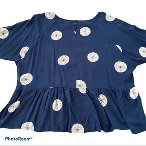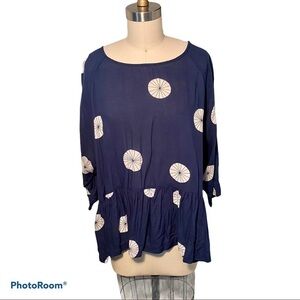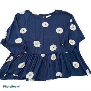 Porridge by Anthropologie blue lightweight top pinwheels peplum hem Medium EUC