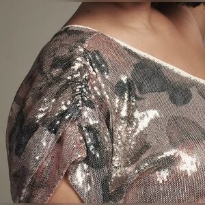 Porridge x Anthropologie One-Shoulder Floral Sequin Maxi Dress in Pink Rose size 3X
