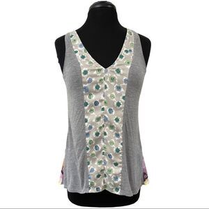 Anthropologie Porridge Minthi Mixed Media sleeveless top. Multi-pattern. High low hem. Gently used condition.