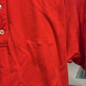 Sorry this wrinkled! I had it stored for a long time in my unlisted inventory. Just a basic cotton polo but has a Porsche logo.