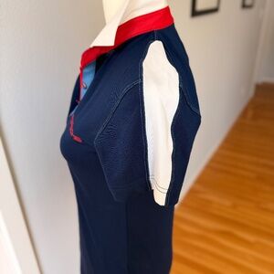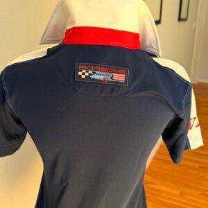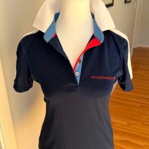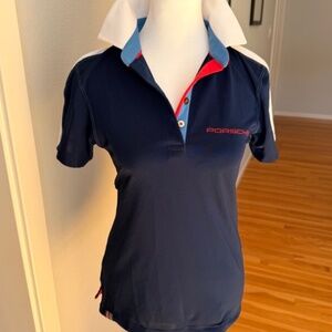 Elevate your casual wardrobe with this stylish and sporty Porsche women's fitted polo shirt in a classic navy blue color, accented with a crisp white collar. Tailored in women’s size X-Small, it offers a flattering, athletic fit that’s both comfortable and fashionable—perfect for Porsche enthusiasts or anyone who appreciates premium automotive lifestyle apparel.