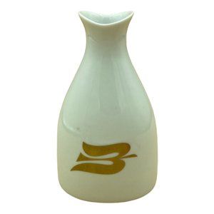 Porsgrund Norway Varefakta Cruet Vase P555 White Gold Bird Emblem 5.5” x 3.5”.