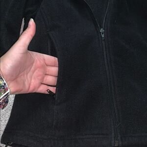 Women’s, gently used, black, full zip, fleece jacket. Zipper side pockets and side cables to adjust the fit. Small
