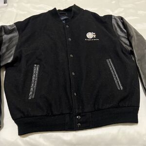 Varsity Letterman style Coat Port Authority Black Jacket Wool Blend Leather Sleeve Size L Aviation PPI Logo