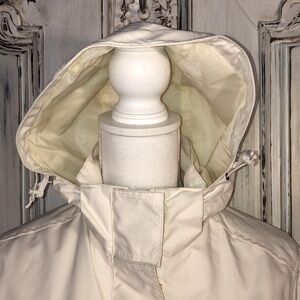 Port Authority Cream Packable Hoodie Raincoat Zip and Button Front Closing S/S